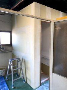 既存のトイレを解体し、新たに枠組みから部屋を作ります。