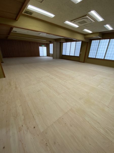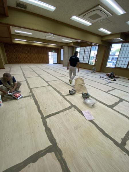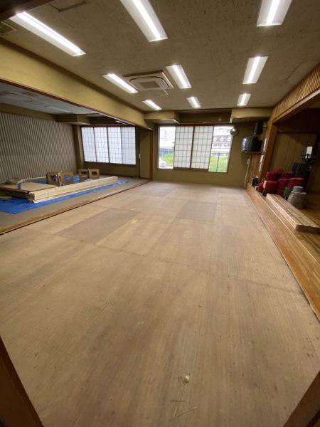 この町会会館はもともと畳とカーペットでしたが、高齢化によって座るのがつらいという方が増えてきていることから、床をフローリング化し、机と椅子を設置することになりました。