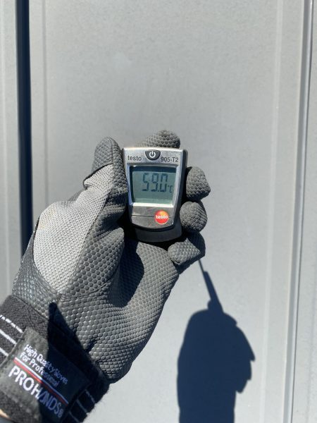 様々な場所で温度を計測しましたが、屋根の表面温度は軒並み50度以上となっていました。