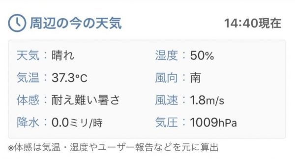 検証は、川口市の弊社社屋にて行いました。天気は正に真夏日であり、気温は既に37.3℃。正に耐え難い暑さです。