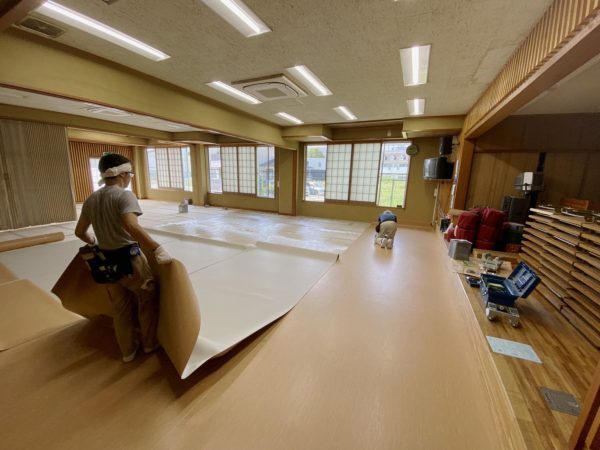 この町会会館はもともと畳とカーペットでしたが、高齢化によって座るのがつらいという方が増えてきていることから、床をフローリング化し、机と椅子を設置することになりました。