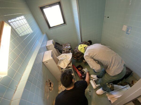 トイレの老朽化に伴う男子トイレのリフォームと、女性社員の増加に伴い女子トイレの増築を行った事例です。
