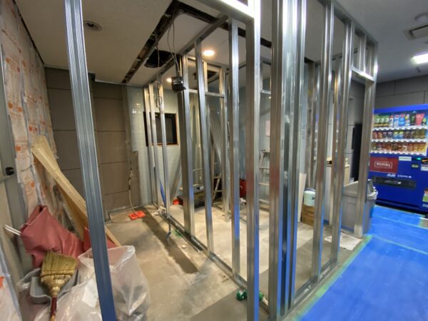 個室のパーテーションを入れることで随分とトイレらしくなってきました。