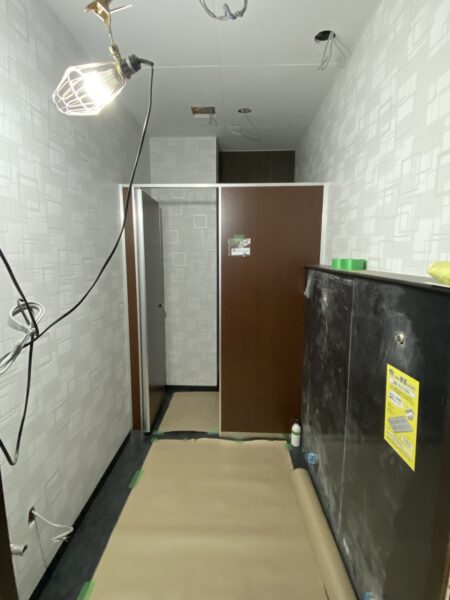 既存の壁を撤去し、物置のスペースが使えるようにします。