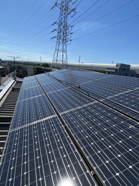 検証を行う屋根の状況です。太陽光パネルを敷き詰めています。